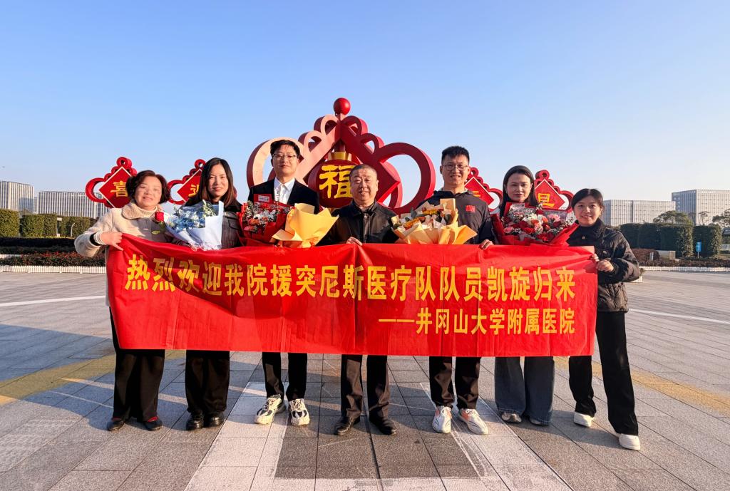 12月27日,中国(江西)第29批援突尼斯医疗队队员,井冈山大学附属医院皮肤科主治医师贺旭文与骨伤康复科主治中医师刘传镇,在完成为期一年的医疗援助任务后,顺利返回吉安。吉安市卫生健康委领导、医院代表及队员家属专程前往吉安西站迎接。