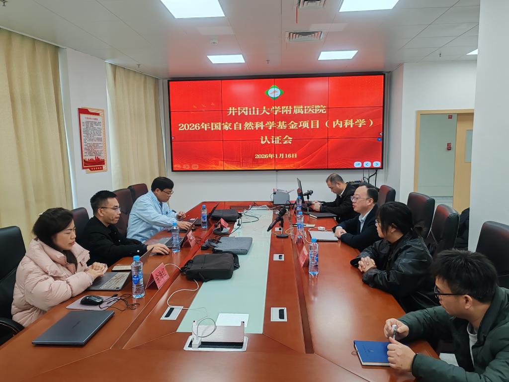为贯彻落实“科教兴院”战略,提高2026年国家自然科学基金项目的申报质量,1月16日下午,井冈山大学附属医院在全科楼举办了国家自然科学基金项目内科学专题论证会。校医学部傅强教授、口腔系李伟教授、中医药学院余海红教授受邀组成评审组,院党委委员、副院长曾俊权出席,科教科负责人以及内科学重点项目申报人参加了会议。