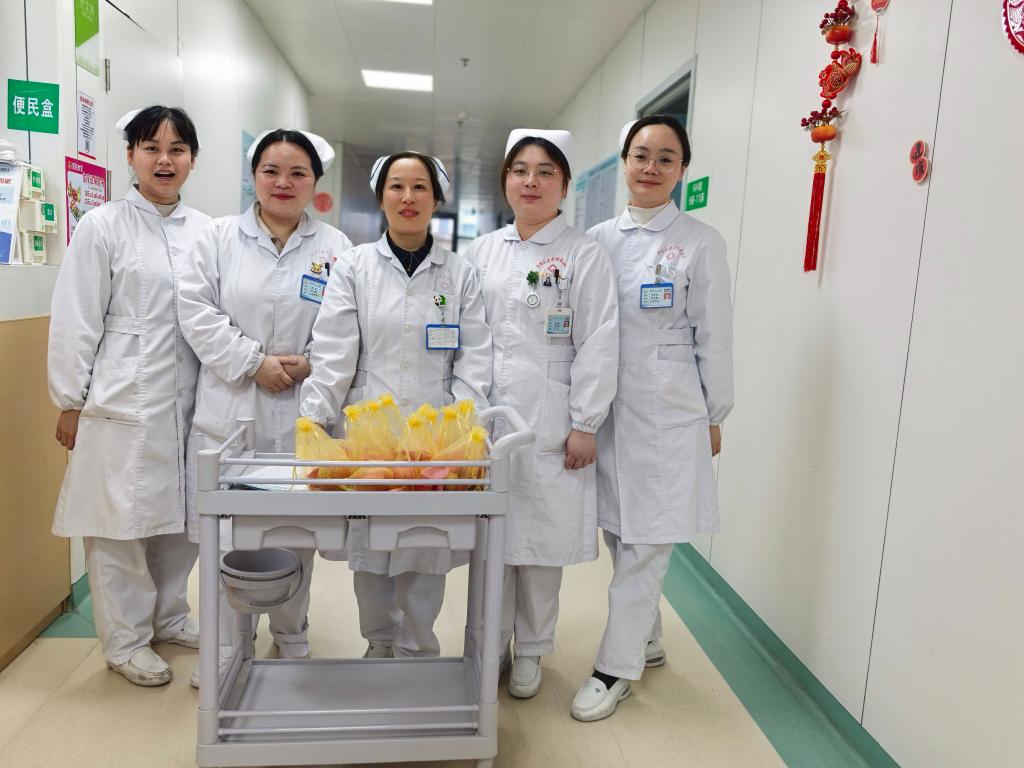 2月13日,春节前夕,井冈山大学附属医院肾内风湿免疫科开展新春慰问活动,为住院患者送上特别准备的新春福袋,将节日祝福与健康关怀送到患者身边。