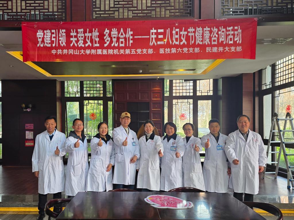 2026年3月6日,井冈山大学附属医院机关第五党支部、医技第六党支部携手民建井大支部,在吉安市东方庐陵宾馆开展“党建引领 关爱女性 多党合作”主题活动庆祝“三八”国际妇女节,为50余名吉安市商业界女企业家送上节日健康关怀。