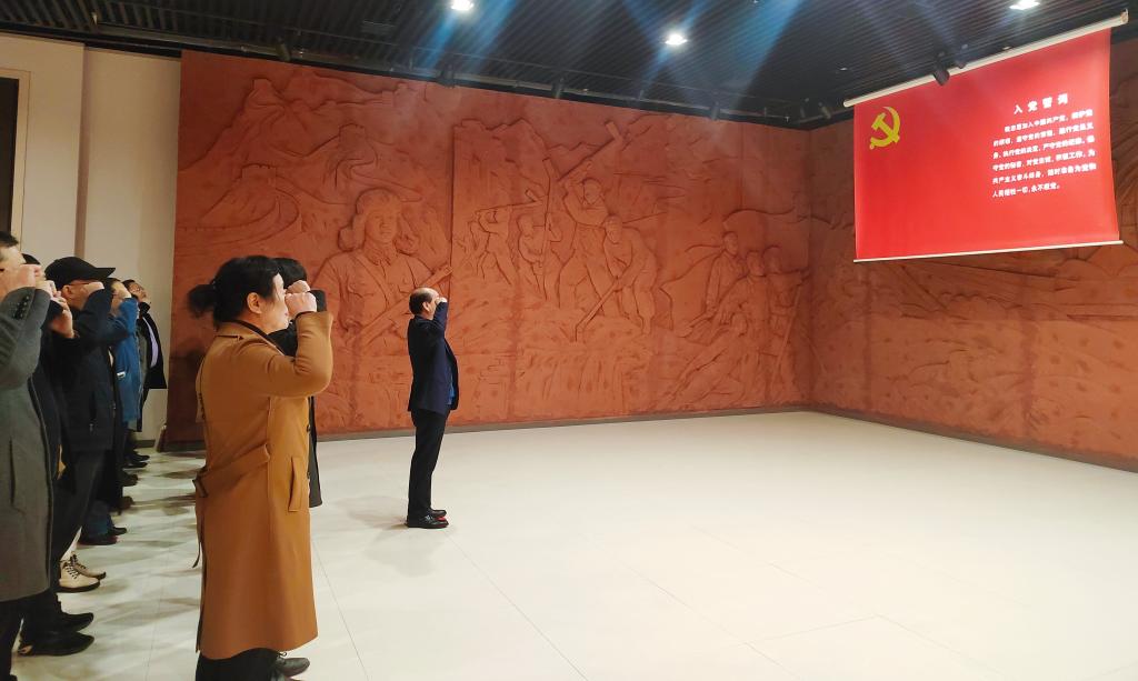 在理想信念教育馆,全体党员重温了入党誓词。全体党员面对鲜红的党旗,再次庄严宣誓:“我志愿加入中国共产党……随时准备为党和人民牺牲一切,永不叛党。”铮铮誓言,体现了同志们对中国共产党的无限忠诚,使全体党员再一次接受了党性洗礼。