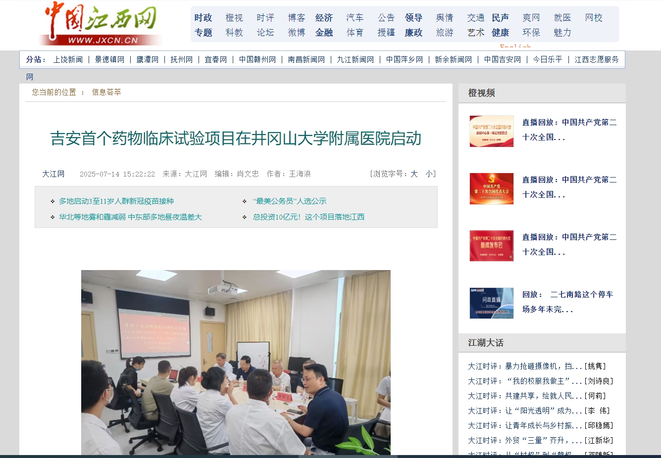 吉安首个药物临床试验项目在井冈山大学附属医院启动