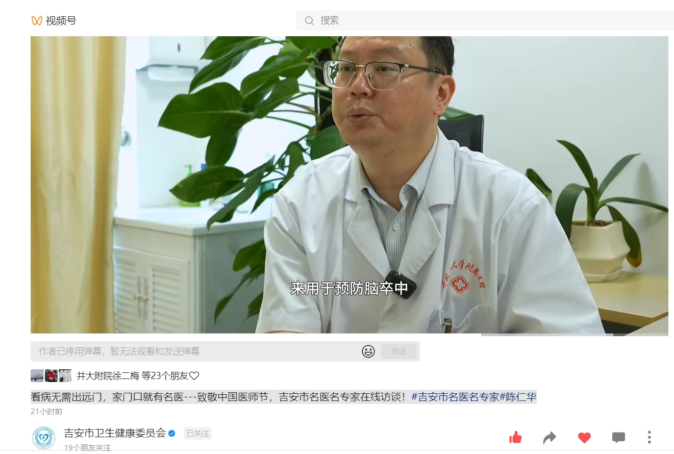 【吉安市卫生健康委视频号】看病无需出远门,家门口就有名医---致敬中国医师节,吉安市名医名专家在线访谈!#吉安市名医名专家#陈仁华