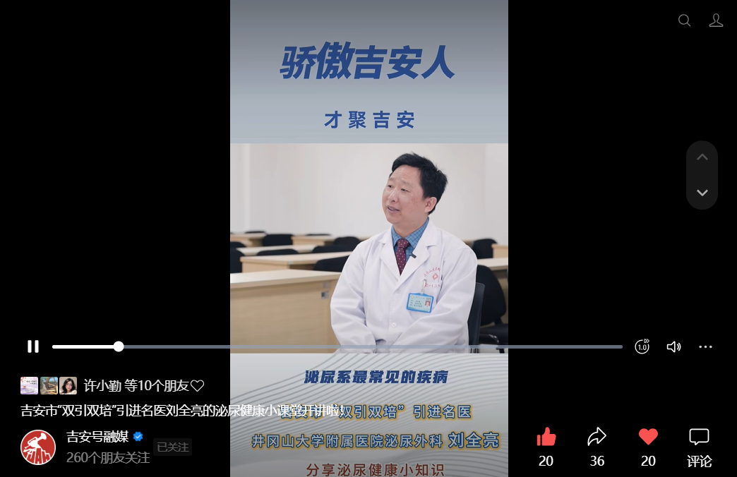 【吉安号融媒】吉安市”双引双培”进名医刘全亮的泌尿健康小课堂开讲啦!