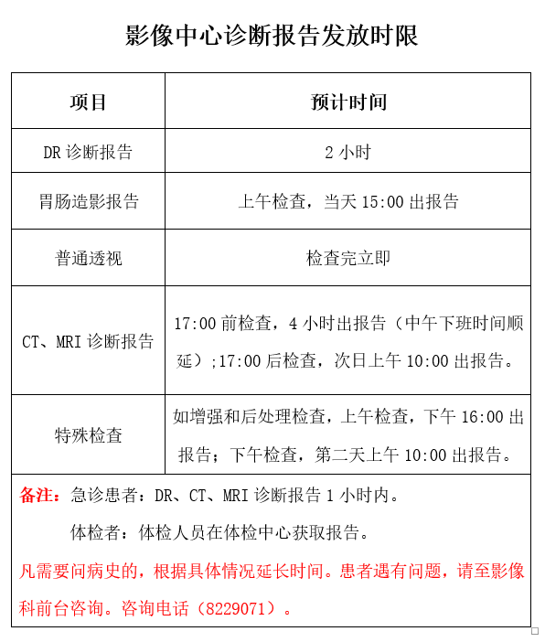 影像科诊断报告发放时限
